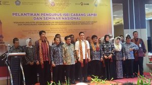 Acara dimulai dengan menyanyikan lagu Indonesia Raya dan dilanjutkan dengan Pelantikan Pengurus ISEI Cabang Jambi Periode 2017-2020 oleh Ketua Umum Pengurus Pusat ISEI, Dr. Muliaman D Hadad. Setelah selesai pelantikan, dilanjutkan dengan sepatah kata dari Ketua ISEI Cabang Jambi terpilih, Prof.Dr. H. Syamsurijal Tan, SE., M.A.